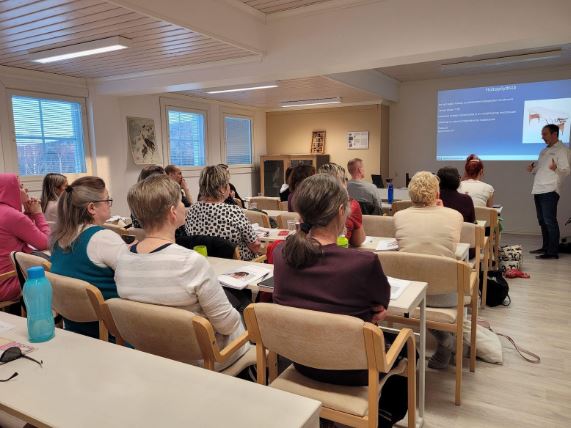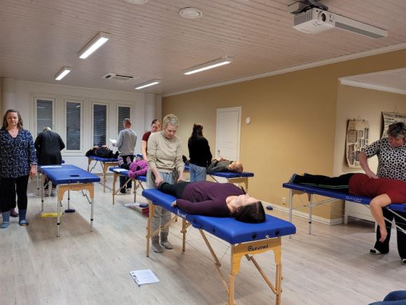 Kuva 5: Suomen Energiahoitajien järjestämät BodyMind Energy Balancing Method -energiahoitokursseilla asioita käydään ensin läpi teoriassa ja sitten niitä harjoitellaan käytännössä.