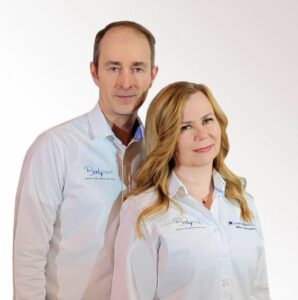Kuva 4: Suomen Energiahoitajien kouluttajat Petri Filipczak ja Miia Andeen rohkaisevat kaikenikäisiä tulemaan kokeilemaan BodyMind-energiahoitoa.